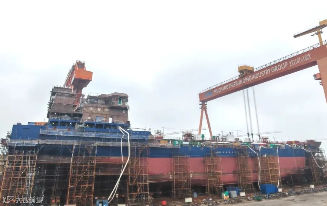 2月28日,武昌造船建造的18500DWT成品油/化学品船2号船C00上建总组顺利吊装完成,标志着该船实现全船成形节点。