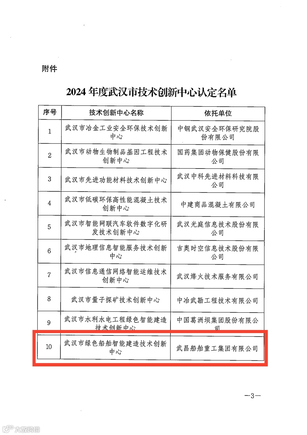 绿色船舶智能建造技术创新中心为武汉市级技术创新中心,该类型创新平台为我市首次认定,旨在推动我市具有全国影响力的科技创新中心建设,以科技创新引领产业创新,积极培育和发展新质生产力。公司为全市首批认定10家中唯一船舶相关企业。