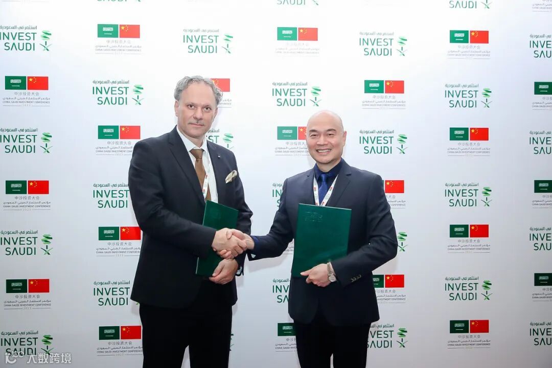 博深集团在大会上被沙特投资部认定为重点企业,参与了会前会见。阿治曼中国城总经理罗峰代表集团在中沙官员的共同见证下,分别与沙特国家投资控股集团公司签署了《关于在沙特投资建设利雅得中国城项目的合作谅解备忘录》;与凌耘科技(深圳)有限公司董事长陈陵辉签署并交换了《“两城”合作谅解备忘录》。