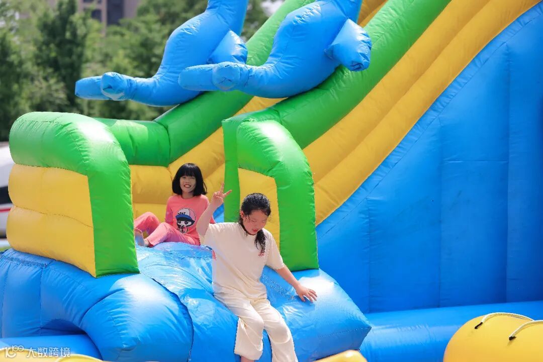 在激烈的比赛之余,舞台上“吸管传真”“灵活的五官”等互动环节,舞台下闲适的手工彩绘、角色扮演等,还有户外的充气城堡、卡丁车、天幕帐篷等,也吸引了不少小朋友和家长。