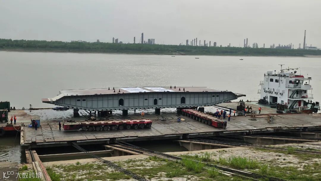 近日,武昌造船重工公司承制的双柳大桥SLGL-2标跨江主桥钢箱梁完成首批跨江主桥共计10片钢箱梁的运输任务。本次运输钢箱梁为主桥两岸主塔及浅水区钢箱梁,暂存放于主桥两岸栈桥支架上,为后续吊梁做准备。此次成功批量发运,是项目从内场转向桥址的重要节点。