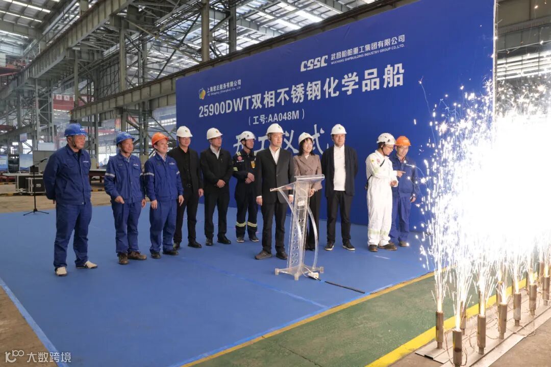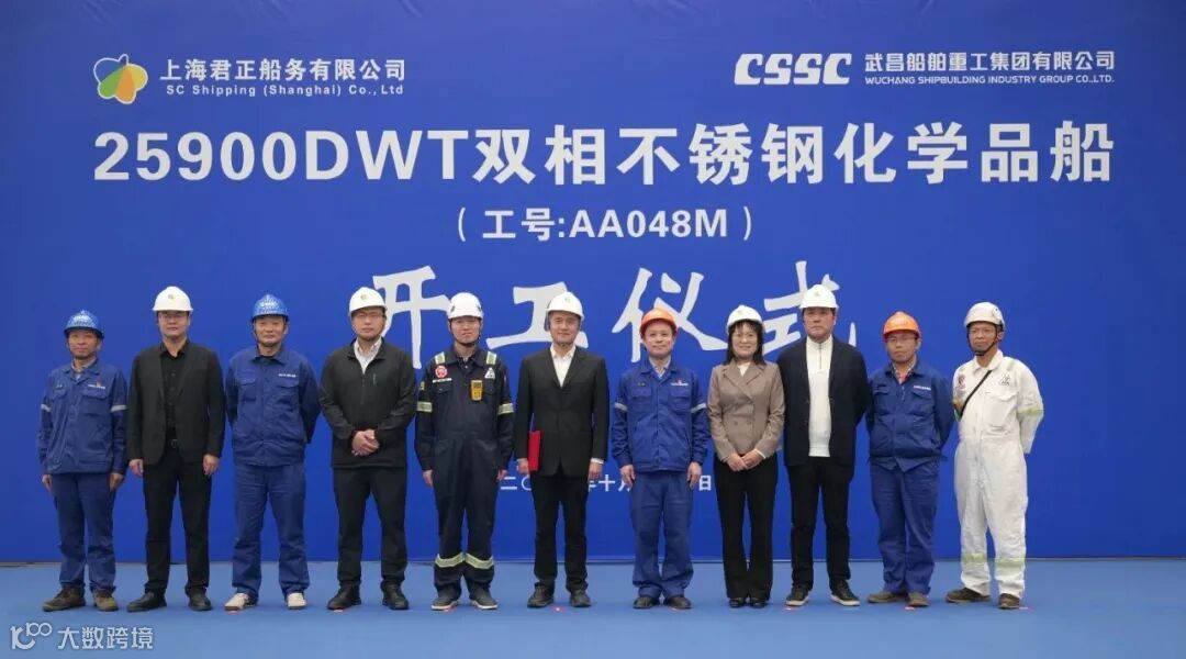 上海君正物流有限公司资产部总经理徐嘉俊一行及现场监造团队,美国船级社南京区主管主任验船师朱奇凯,武昌造船等相关单位负责人参加开工仪式。