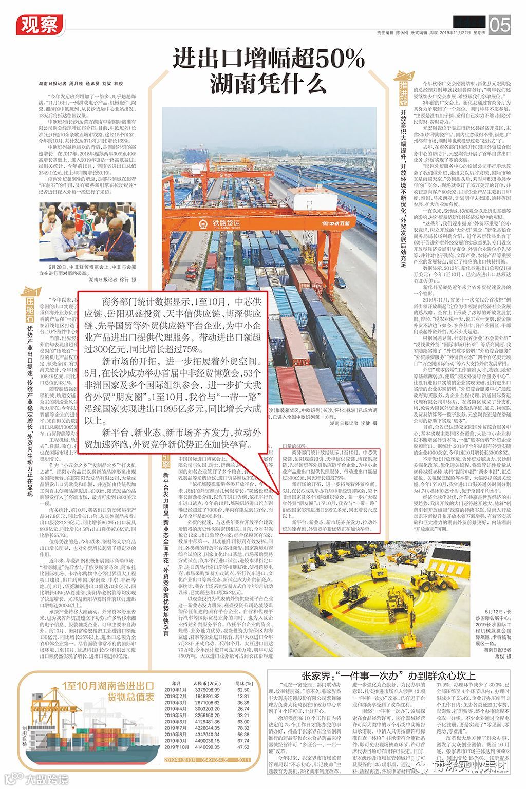 湖南外贸进入2019年一路高歌猛进,前10月进出口增速超过50%。不沿海、不沿边的湖南,凭什么?