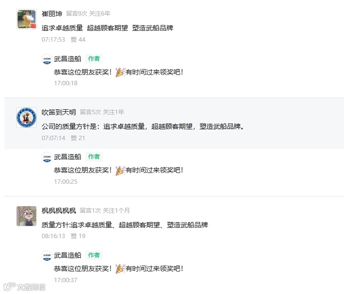 追求卓越质量,超越顾客期望,塑造武船品牌