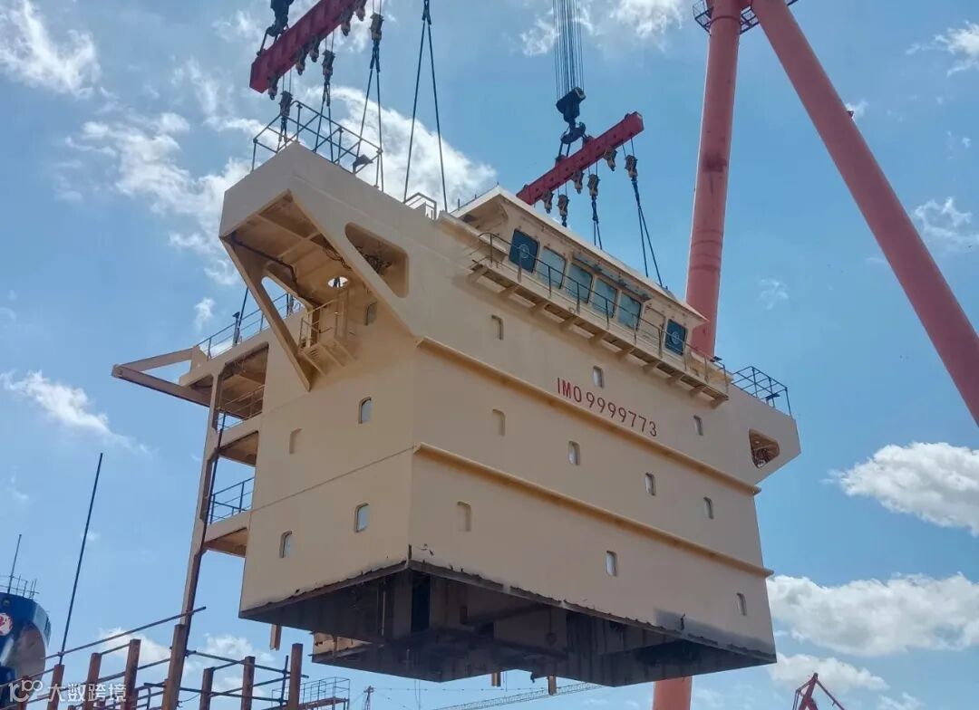 7月29日,随着上建C31总组吊装任务顺利完成,武昌造船建造的系列1100TEU集装箱船6号船全船成形。自该产品上船台以来,武昌造船加强生产策划,优化施工流程,调整生产组织,克服高温恶劣天气科学连续施工,实现所有分段搭载完毕、全船成形。