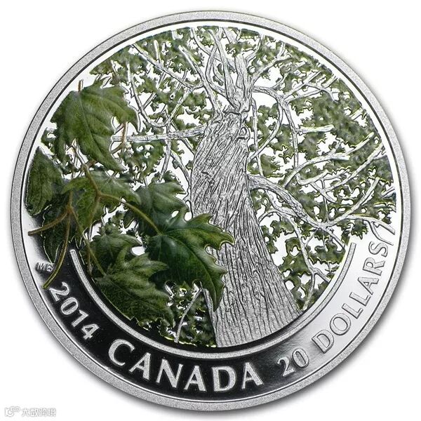 楓樹冠系列是加拿大皇家造幣廠,以逆向設計從一個新穎和獨特的角度呈現了加拿大壯麗的楓樹,從下方向上觀賞楓樹的樹乾和樹冠。