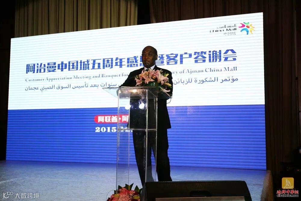 2015年12月22日阿联酋当地时间晚7时,“阿治曼中国城五周年感恩暨客户答谢会”在阿治曼隆重举行,中华人民共和国驻迪拜总领事馆李凌冰总领事、马旭亮副总领事、经济商务室张艺参赞、阿联酋经济部阿治曼经济局长H.E. Sheikh Sultan Bin Saqar Al Nuaimi亲王、阿治曼经济发展局H.E. Ali Eissa Al Nuaimi局长、阿治曼消防局Saleh Saeed Al Matrooshi局长、阿治曼警察局总部H.E Sheikh Ahmed Bin Nasser Al Nuaimi局长等当地职能政府代表、中国驻阿各省商协会代表、阿治曼中国城商户代表以及中外媒体代表近400人出席了本次活动。