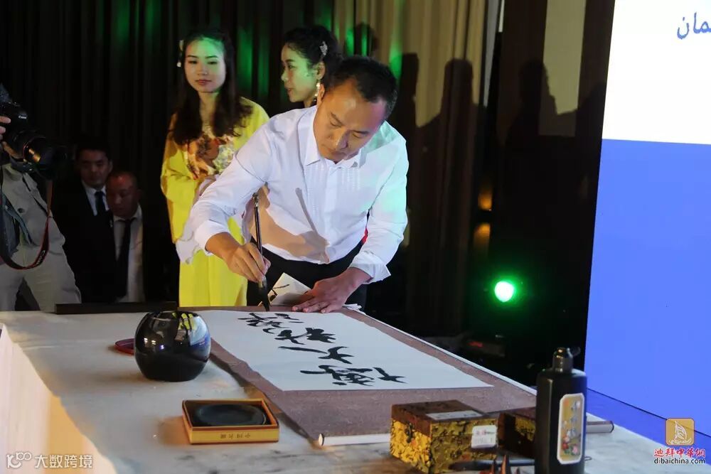 在国有品牌长安汽车的大力支持下,参加本次活动的到场嘉宾均有机会参加中国城五周年庆汽车大奖的抽奖活动;旅阿华侨、广东商会秘书长元永佳先生为本次答谢会活动现场书写了“博大精深、源远流长”的两条转轴,寓意着中国城股东博深集团“博大精深”的企业文化,也象征着中国文化博大精深,更体现中阿友谊源远流长,同时也寓意着以中国城为代表的海外事业有更长久健康的发展。