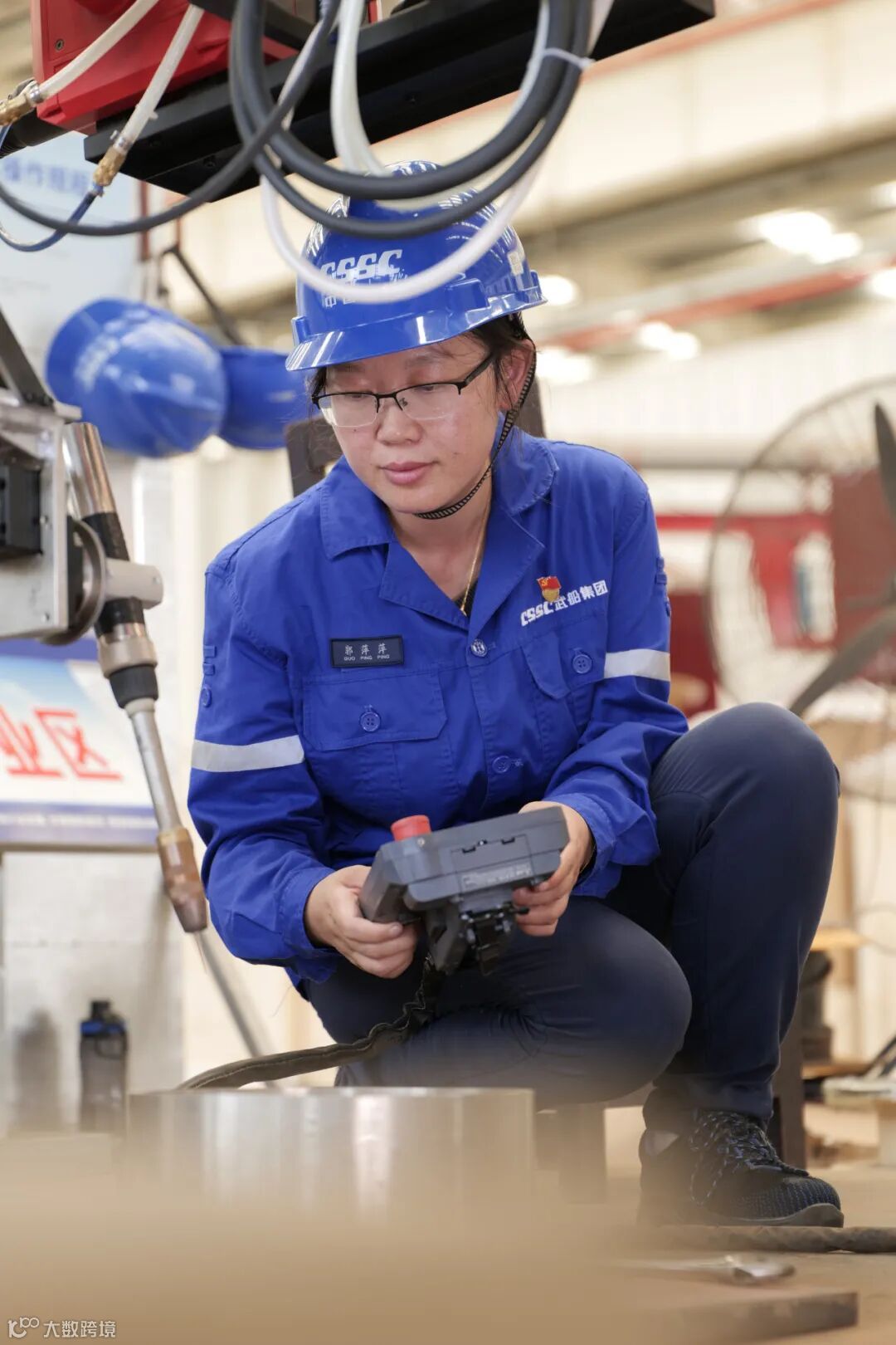 在焊花四溅的生产现场,经常可以看到一位女同志和现场的焊工师傅们认真热烈地讨论问题,眼神专注且坚定。她就是设计院焊接技术研究所的郭萍萍,一名优秀的共产党员。
