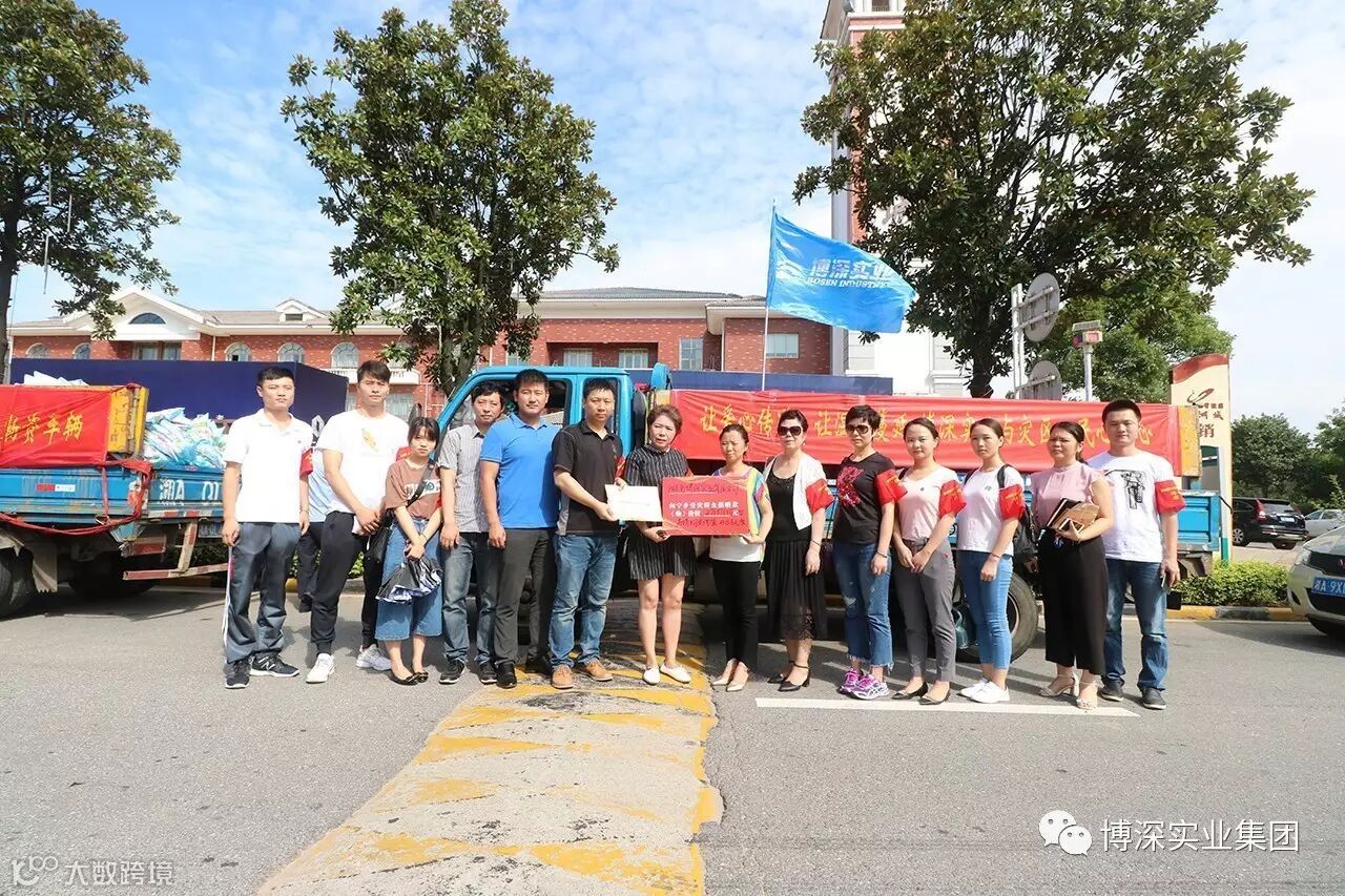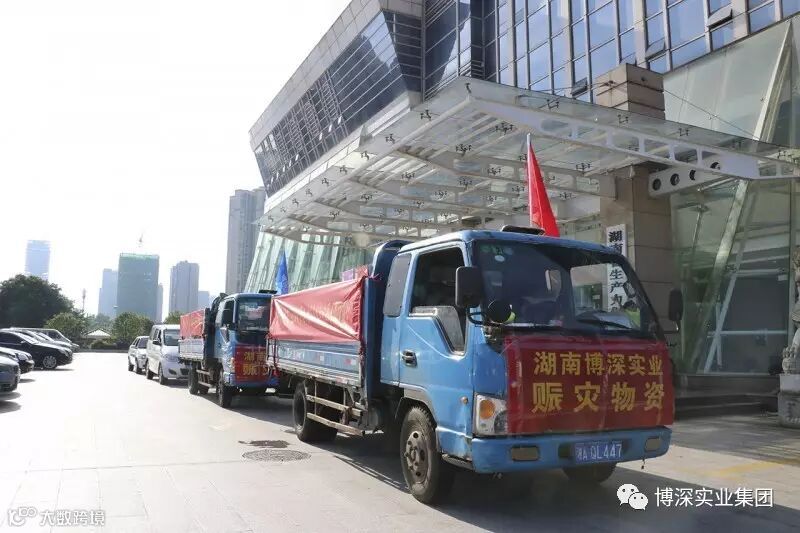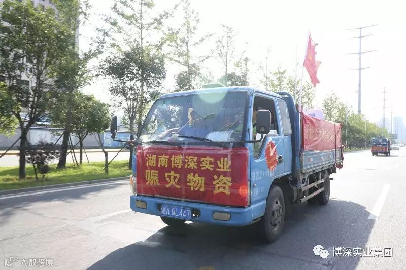 在此次强降雨过程中,宁乡市26个乡镇、逾50万人受灾,抗洪救灾形势严峻。集团党支部又于6日上午8时许,组成由集团党员、入党积极分子及部分中层干部为代表的爱心团队,挂着“让爱心传递,让温暖蔓延 博深实业与灾区人民心连心 ”“情系灾区 同舟共济 博深实业爱心物资车辆”横幅的卡车,满载价值近10万元爱心物资,开赴宁乡市抗洪救灾一线。