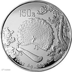 以上四枚幣分別出自1993年中國古代名畫系列(孔雀開屏)金銀紀念幣和1994中國甲戌(狗)年金銀鉑紀念幣。幣面選取的圖案皆為清代宮廷畫師郎世甯的畫作,這也稱得上另一種中西合“幣”了。