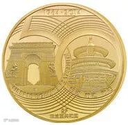 法國發行的金銀幣正面圖案選用了天壇祈年殿與凱旋門兩個代表性建築,背面圖案選用了兩國國旗。