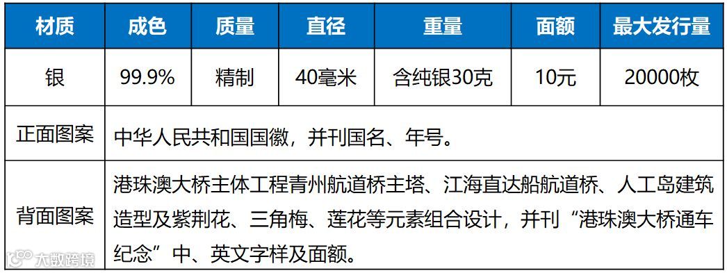 為紀念港珠澳大橋通車,中國人民銀行於今日(10月24日)發行港珠澳大橋通車銀質紀念幣1枚,該銀質紀念幣為中華人民共和國法定貨幣。