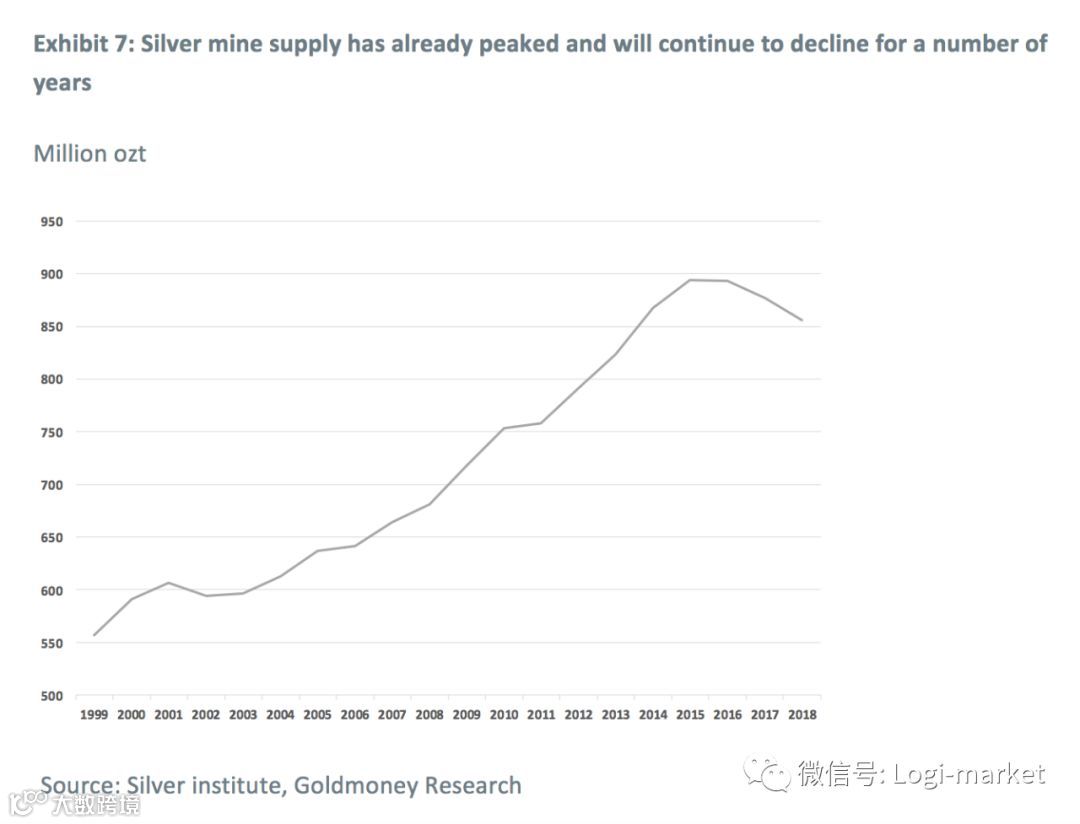 對後者而言重要的是,銀礦產量正在下降。據白銀研究所稱,2015/2016年銀礦供應量達到頂峰。與此相比,由於長期投資不足,未來將進入礦業供應下降期的黃金採礦業,白銀行業在這一發展中處於領先地位,因為2018年礦業供應已下降2%