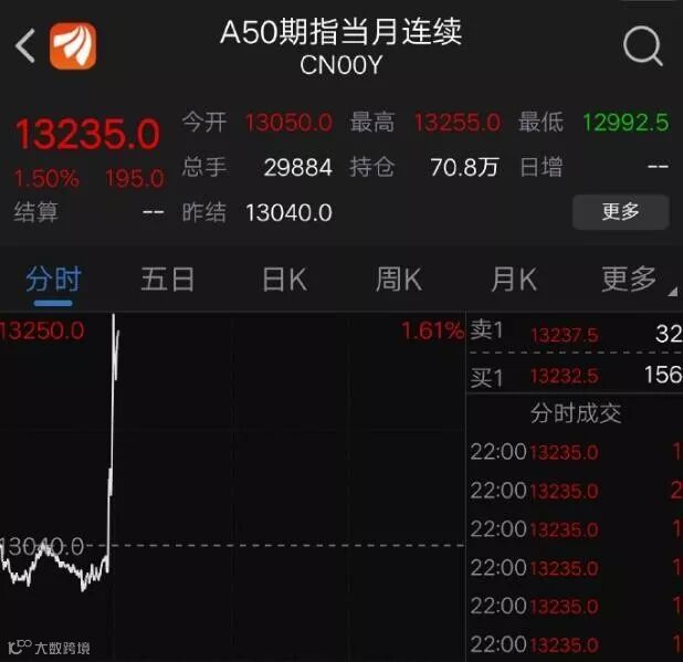 消息一出,全球金融市場暴動,A50暴漲2%,離岸人民幣漲700點,原油漲近2%,黃金大跌逾2%.....基本上狂歡了!