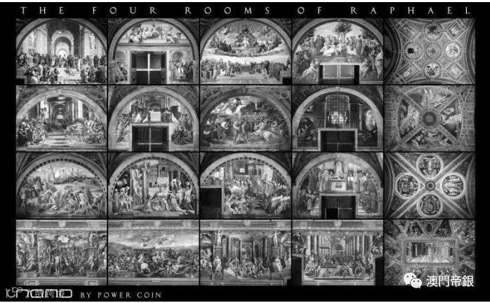 幣身中間鑲嵌的奈米晶片描繪了拉斐爾房間中的20張壁畫