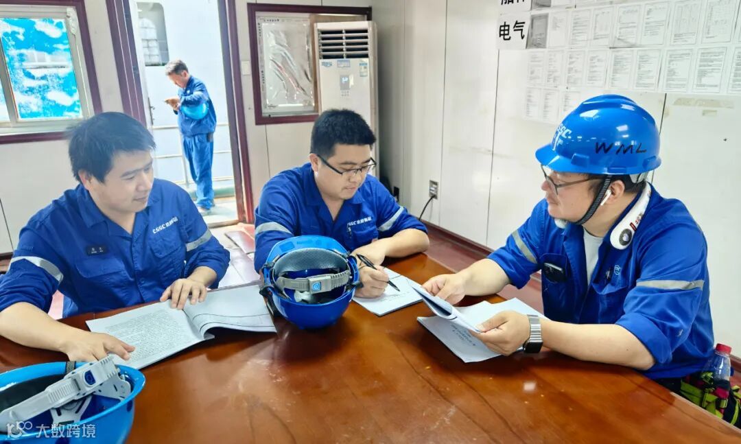 ▲采购主管王晶与项目部人员一起对产品离厂及后续试航的物资保障状况进行全面清理、落实