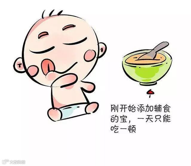 刚刚开始添加辅食的宝宝,一天只能吃一顿。最好在2顿奶之前或之后,不要夹在中间,以免干扰正常的吃奶,根据实际情况慢慢添加。