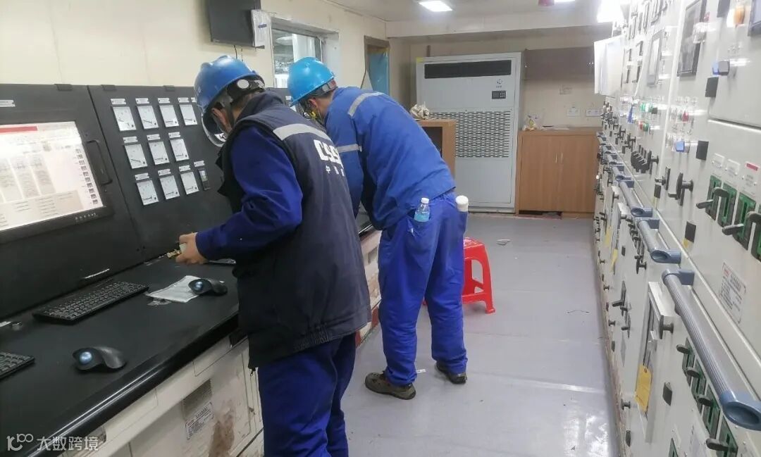 ▲姚畅和许鹏等人进行三维调整机联动控制接线并联调工作