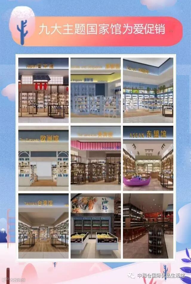 (日本馆、韩国馆、美洲馆、欧洲馆、东盟馆、澳新馆、洋酒馆...)