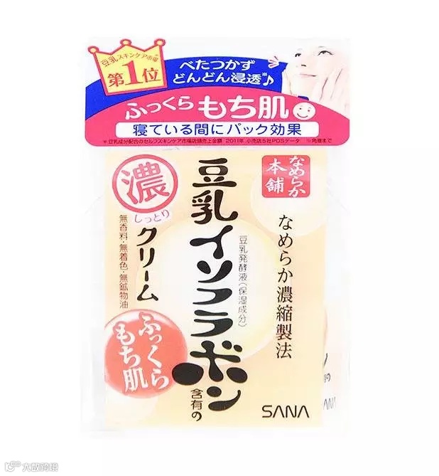 SANA莎娜豆乳美肤浓润滋养霜,保湿美白面霜滋养肌肤修整纹理。适用于干性,中性,混合性肌肤,敏感性肌肤,缺水,发红,肤色发黄,有斑点和暗疮印都适用。 日本销售NO.1的人气护肤品系列,纯天然制造,不添加香料、色素、礦物油的優質配方,所以再敏感的皮肤都可以放心用,美白,保湿二合一。