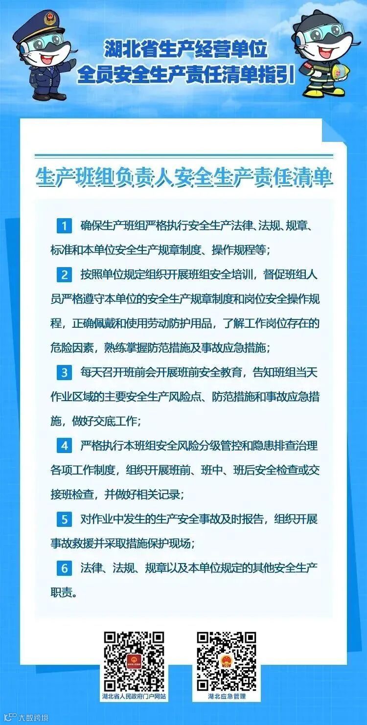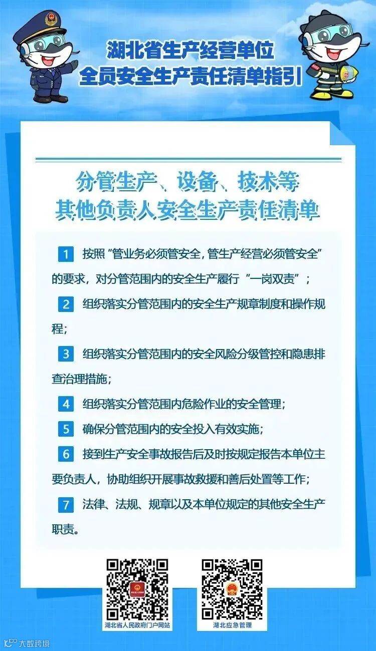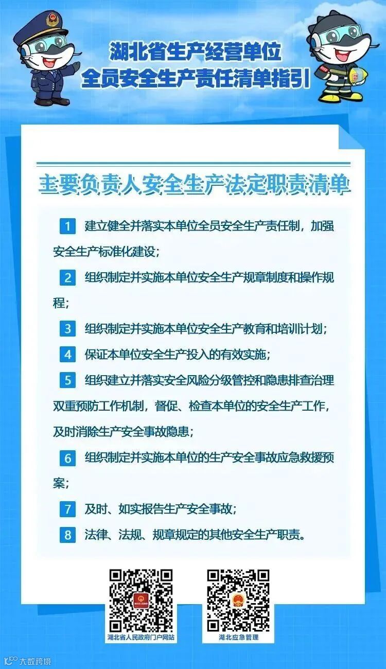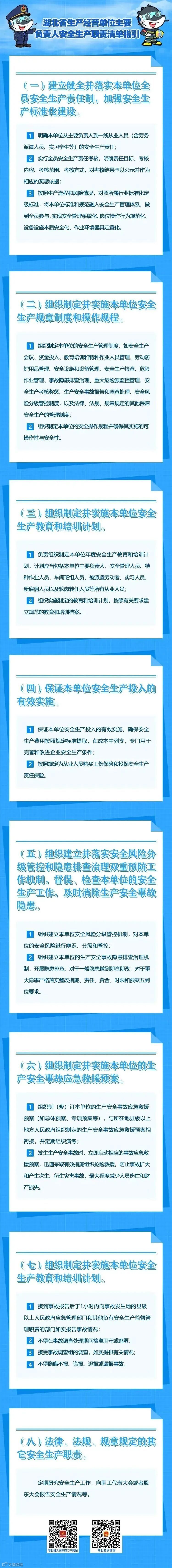 为了帮助生产经营单位建立健全全员安全生产责任制,推动包括主要负责人在内的各类从业人员充分认识、全面履行自身安全生产职责,2022年10月21日,湖北省安全生产委员会办公室印发了《湖北省生产经营单位主要负责人安全生产法定职责清单指引》和《湖北省生产经营单位全员安全生产责任清单指引》的通知(鄂安办〔2022〕51号,以下简称“两个清单”)。