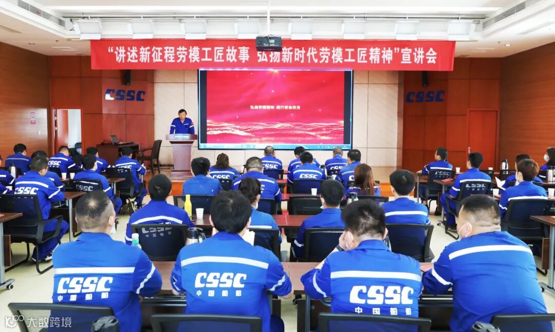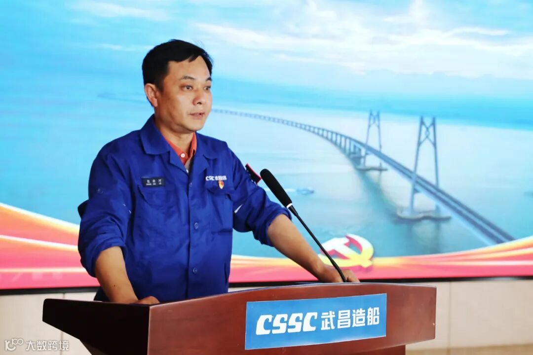 第三位登上宣讲台的是“荆楚工匠”、“武汉市劳动模范”获得者,重装公司周永和。他为大家讲述了从武船技校起重专业毕业进厂25年的工作经历,从学徒到班组长,从初级工到“大国工匠”,从FAST天眼到军运会舞台设备,周永和用精湛的操作水平,成为 2016 年央视纪录片“大巧破难”中的大国工匠,展现出他执着、专注、踏实、严谨、敬业、创新、精益求精的精神。