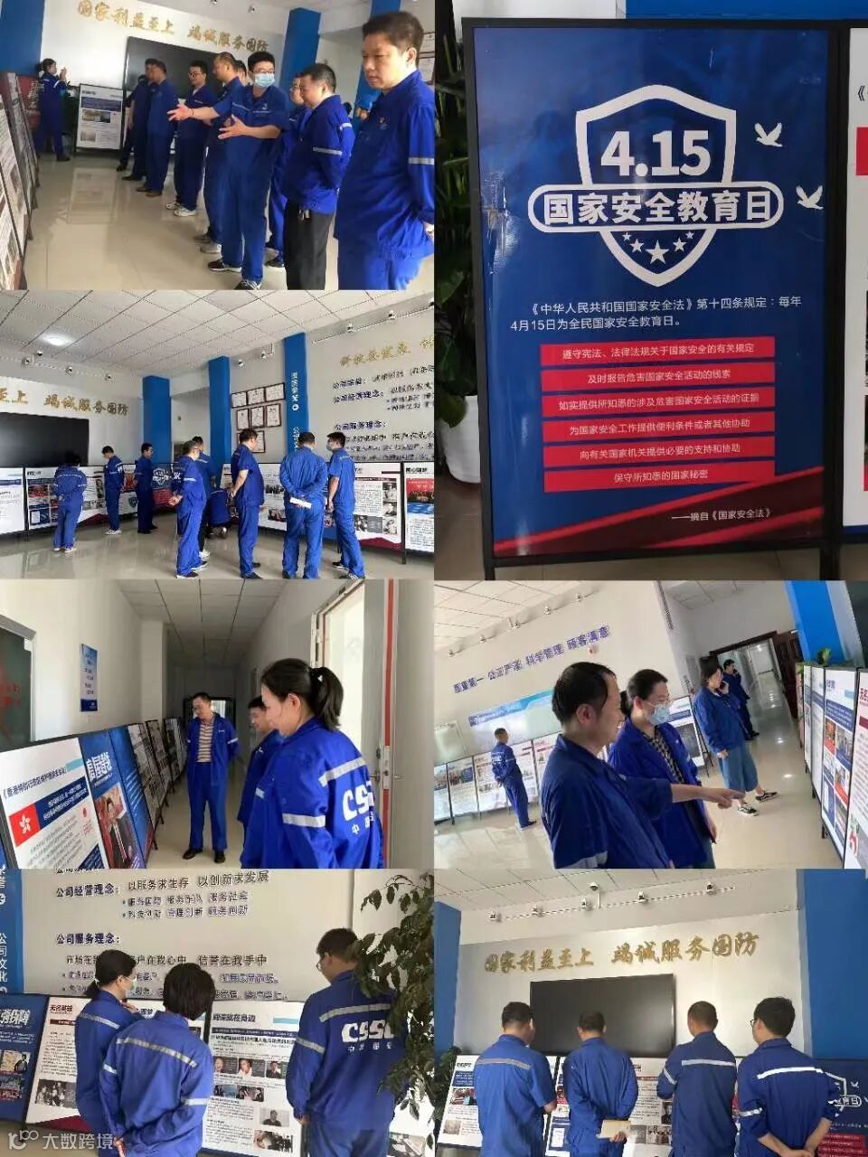在公司厂区内设置五个国家安全宣传展展点:双柳厂区创新楼1楼大厅、军船公司1楼大厅、计量公司1楼大厅、重工阳逻厂区、重装庙山厂区,供公司员工(含劳务人员)观看学习,共有7585名员工,其中劳务人员3251人参与此项活动。