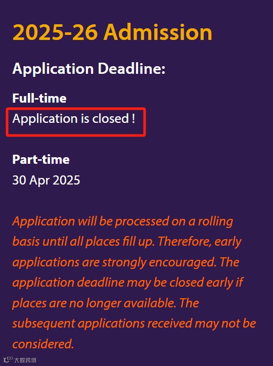 “申请将按滚动方式处理,直到所有名额填满。因此,强烈鼓励提前申请。如果名额不再可用,申请截止日期可能会提前关闭,收到的后续申请可能不会得到考虑。”