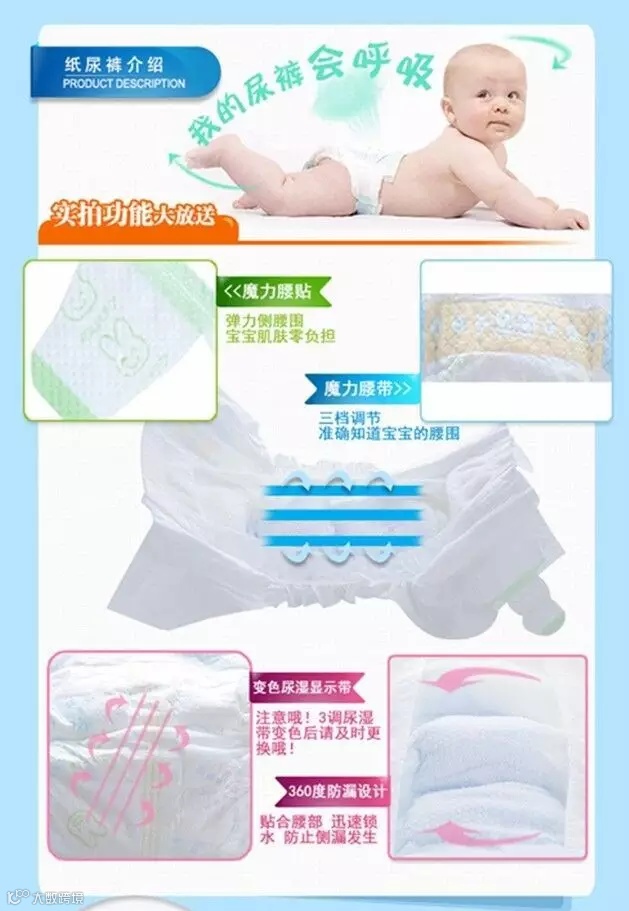 我的纸尿裤会呼吸,而且腰贴有弹力,一点也不累哦!
