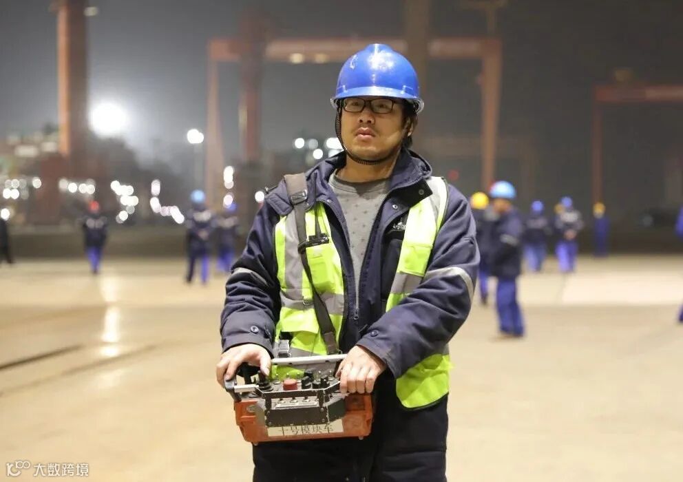夜间移船,要带着产品安全抵达滑道,操作人员专心致志、全神贯注,随时关注着目标物和周边环境,丝毫不敢马虎。