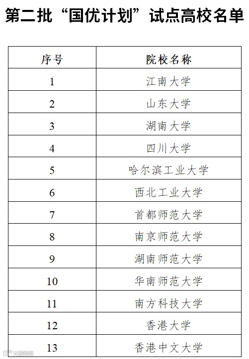 近日,国家教育部公开了第二批“国优计划”试点高校名单。