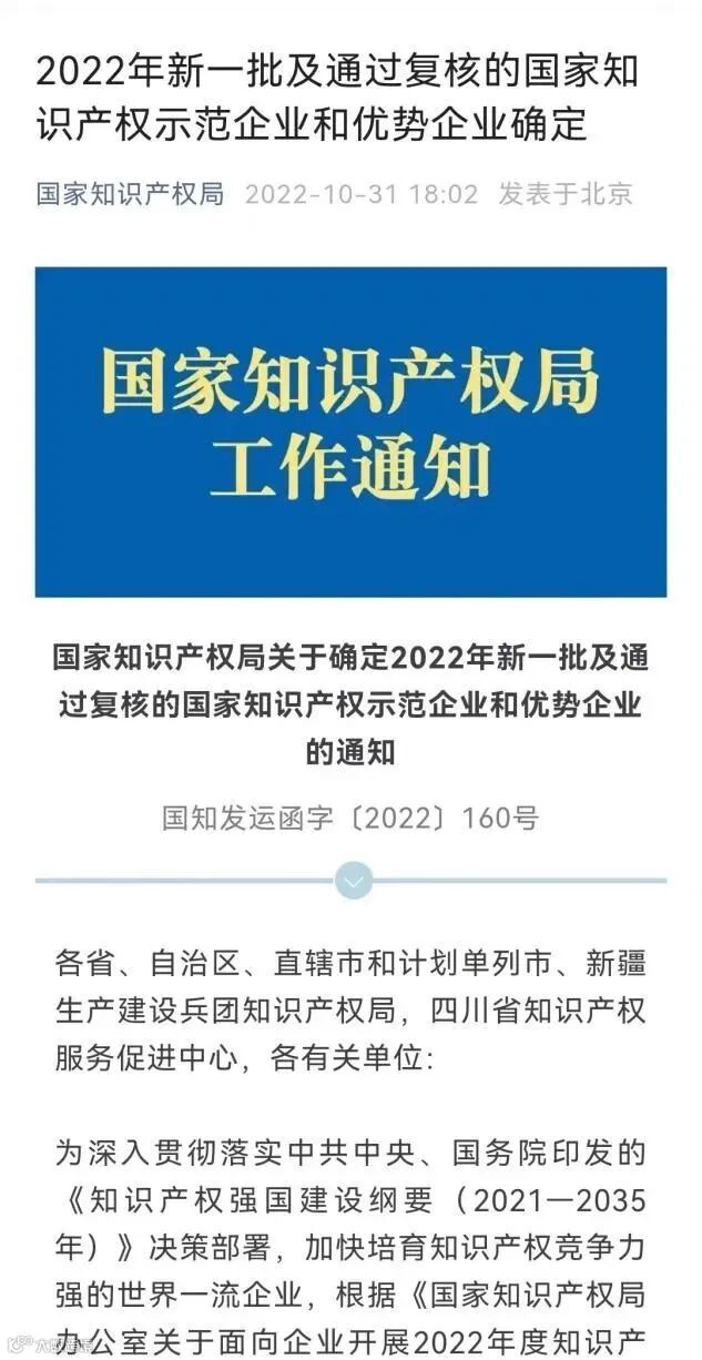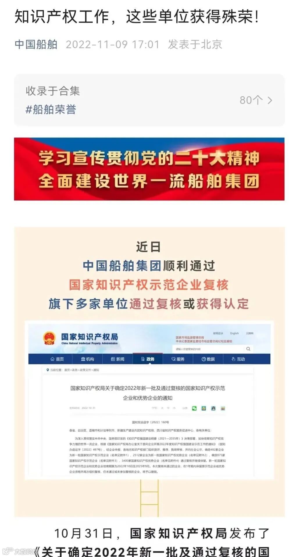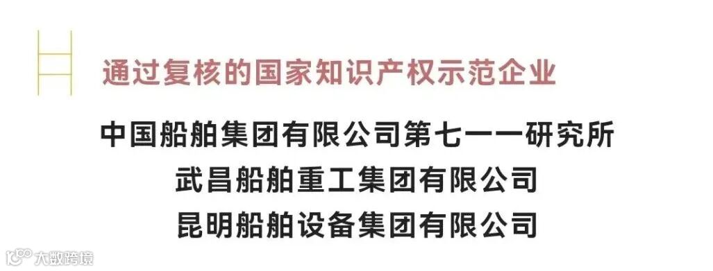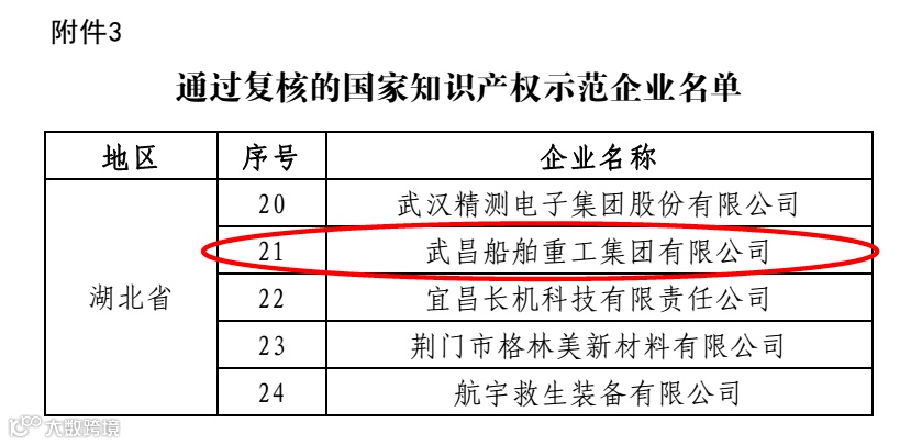 近日,国家知识产权局下发《关于确定2022年新一批及通过复核的国家知识产权示范企业和优势企业的通知》(国知发运函字〔2022〕160号),中国船舶武船作为中国船舶集团有限公司成员单位获得该荣誉的三家之一,顺利通过复核。