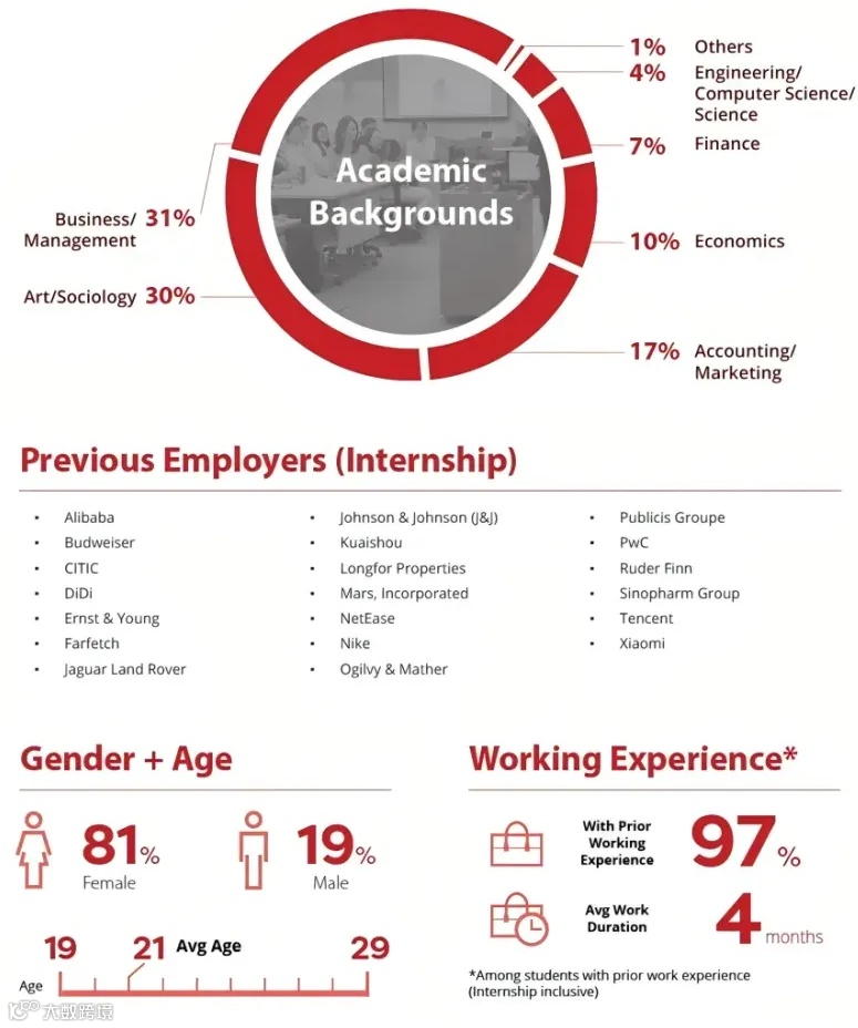 市场营销硕士是商学院中最适合跨专业申请的项目之一。人文社科背景学生录取比例高达30%,仅次于商业/管理背景(31%),特别适合文科背景的学生跨申商科方向。