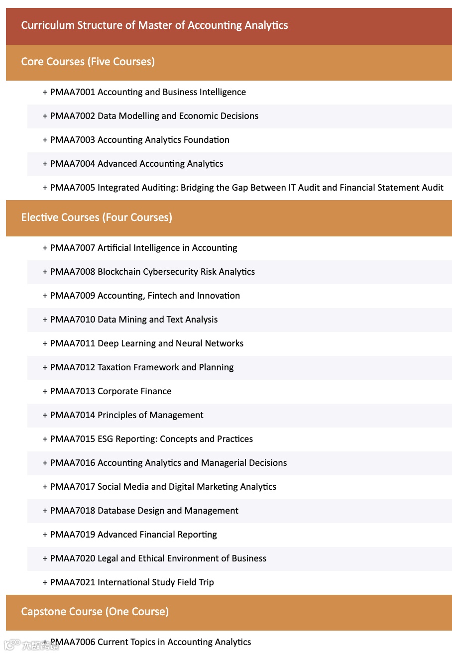 5门基础核心课+3门高级核心课+3门选修课+1门capstonecourse。