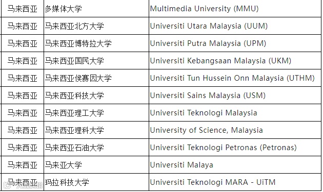 考虑到今后回国落户上海的问题,在上海人社部门拟定的世界高水平大学名单中,马来西亚共有11所大学入围: