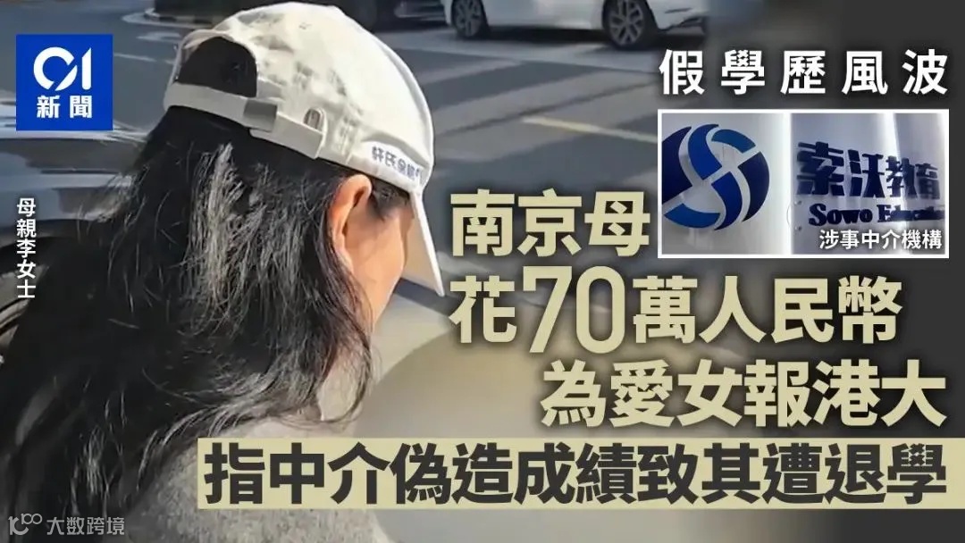 这次的事情是这样的:南京李女士耗资70万人民币,通过中介机构帮助女儿成功申请进入香港大学。