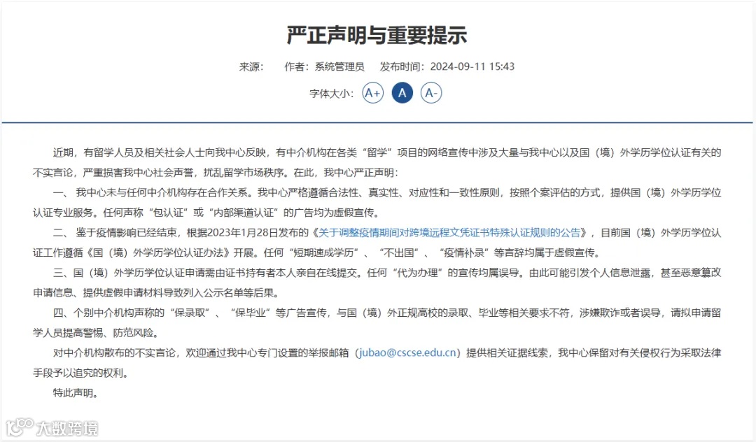 个别中介机构声称的“保录取”、“保毕业”等广告宣传,与国(境)外正规高校的录取、毕业等相关要求不符,涉嫌欺诈或者误导,请拟申请留学人员提高警惕、防范风险。