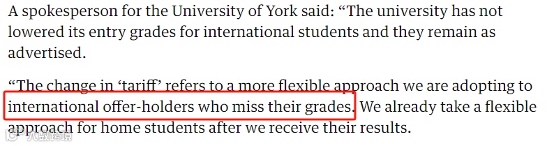 对此,约克大学官方发言人表示:这项决定并不是降低海外学生门槛,而是针对成绩不达标的国际offer-holder采取的一种更灵活的方式,也是让学校在全球市场上保持竞争力。