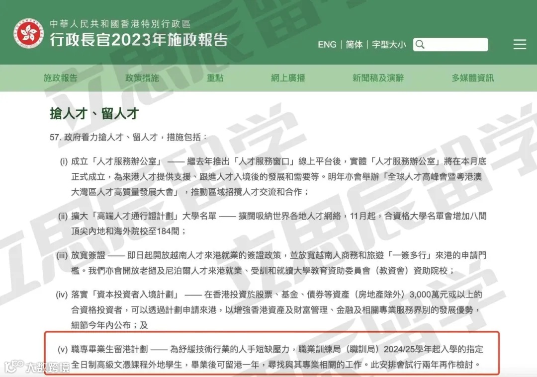 5)毕业后6个月内可申请为期一年的VPAS签证以留港寻找工作;