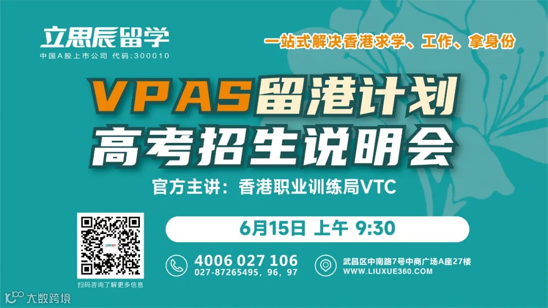 2024/25 学年非本地生入学申请截止报名日期为7月7日。为更好的让您了解香港“VPAS”计划招生要求,武汉立思辰留学将于6月15日(周六)上午9:30举行“VPAS”计划招生说明会,届时,香港职业训练局VTC工程系署理主任及资讯科技系主任将莅临武汉立思辰留学办公室◀◀◀◀现场为您带来《香港揽才新政:VPAS留港计划》的官方解读,欢迎今年的高考生及考生家长到场参加!可提前电话或扫码预约。我们的地址是: