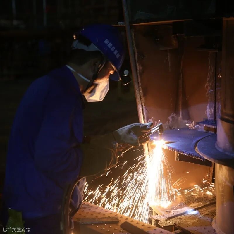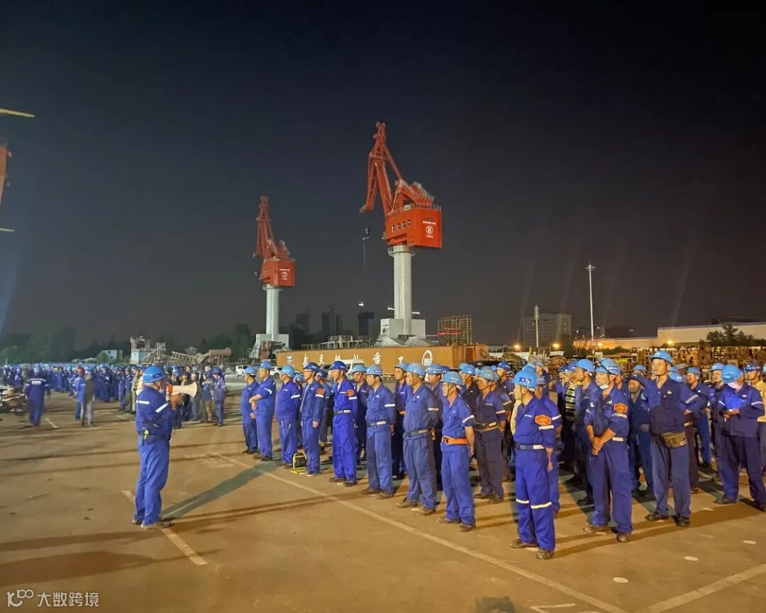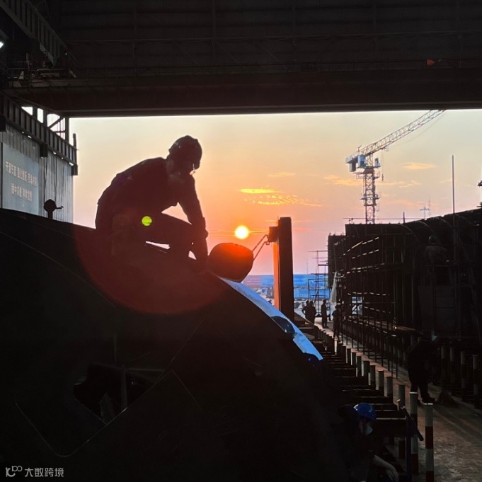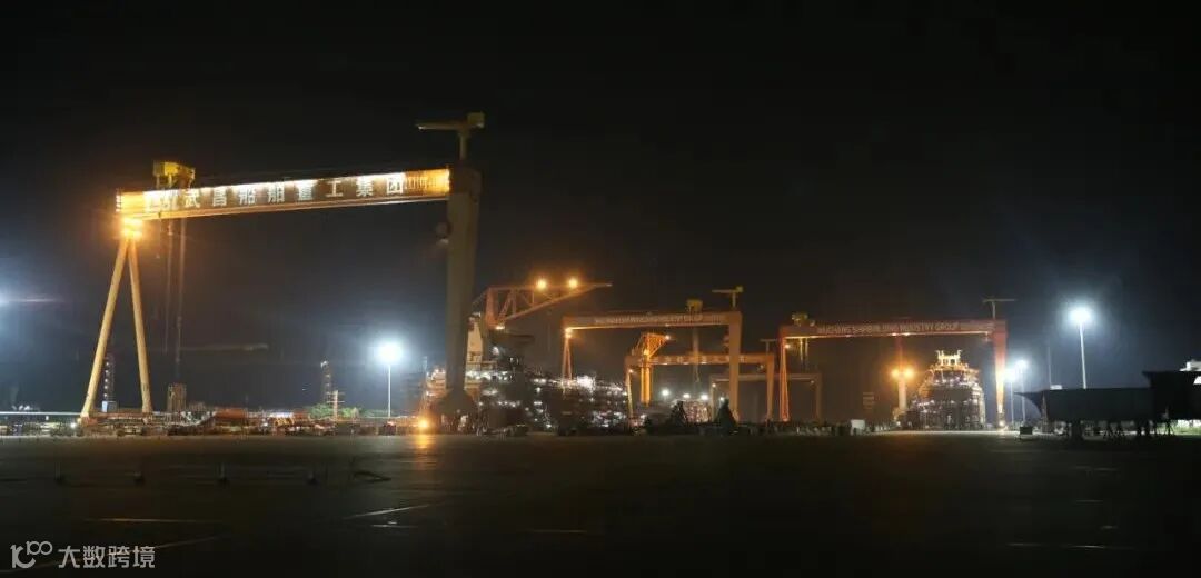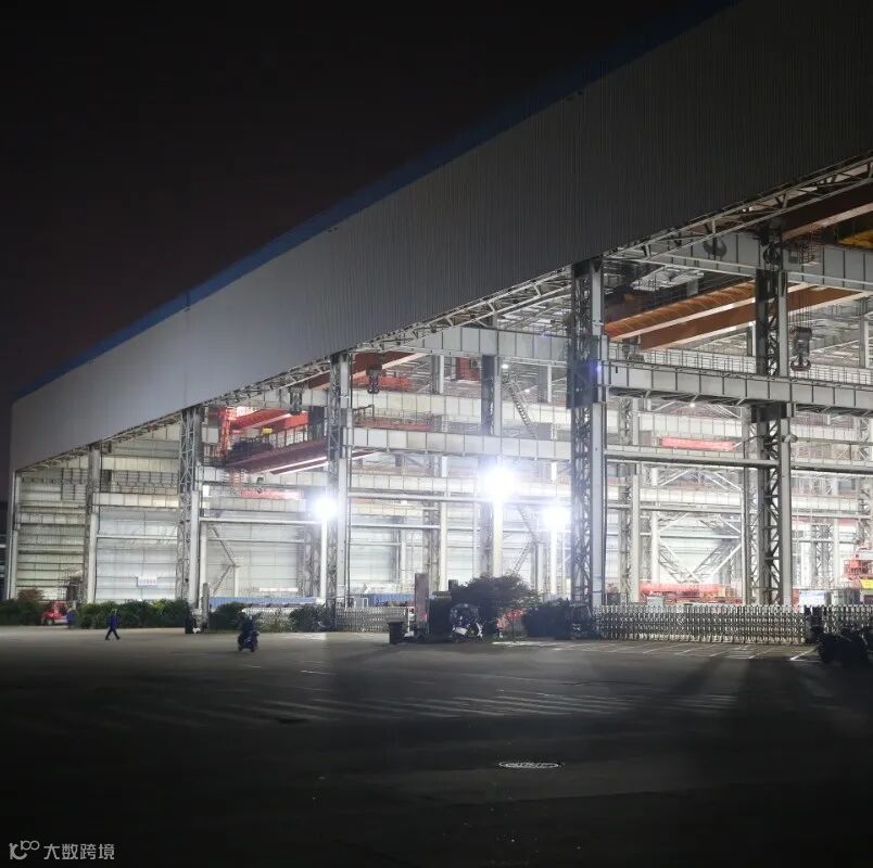 △俯瞰远眺,深夜的船台和车间,看似宁静,深入内里却一片火热
