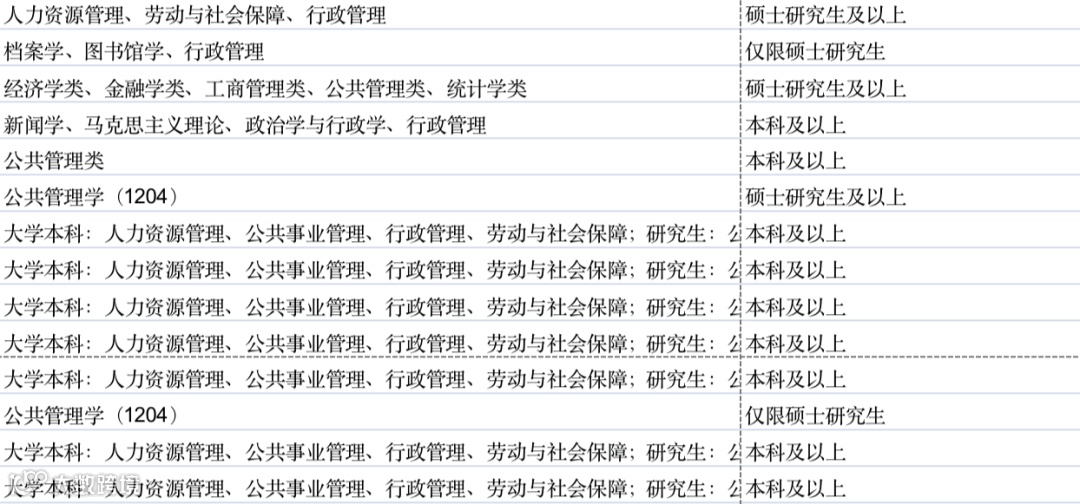 专业细分:公共管理、行政管理等