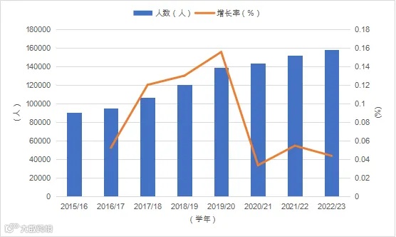 过去几年的数据显示,2015/16-2019/20学年,在英接受高等教育的中国留学生总人数涨幅超过50%,增长率持续维持在中高水平,最高单年增幅达到 15.57%。这表明,中国学生对于优质的海外高等教育有着强烈的需求,并且随着中国经济社会的蓬勃发展,越来越多的家庭有了出国留学的能力。英国作为留学的热门目的地,其声誉不断增强,对中国留学生仍具有持续吸引力。
