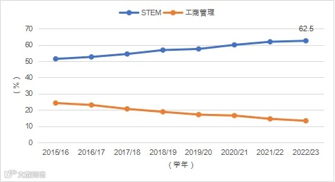2015/16~2022/23学年中国在美留学生就读STEM专业和商科的占比