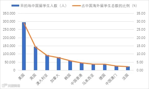 根据UNESCO数据显示,截止至2021年,最多中国学生选择的前五个留学目的地,占中国海外留学生总数的65.96%,这五个国家分别为: