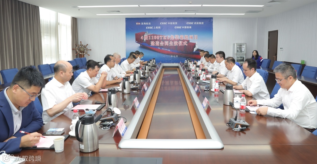 7月7日,中国船舶武船与CA SHIPPING(中船租赁和亚海航运成立的合资公司)签署的4艘1100TEU集装箱船项目合同生效仪式在武船总部举行。这是公司继此前交付的2艘700TEU集装箱船后承接的又一支线集装箱船订单,为公司深耕支线集装箱船市场,实现批量化、专业化建造奠定坚实基础。