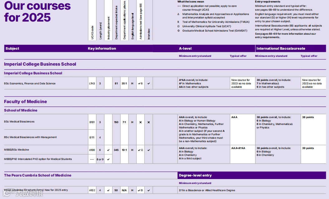 从上图可以看出,IC的最新指南详细地展示了各专业的申请要求、笔面试要求和变化、语言要求、专业招生人数计划、录取难度数据等信息。