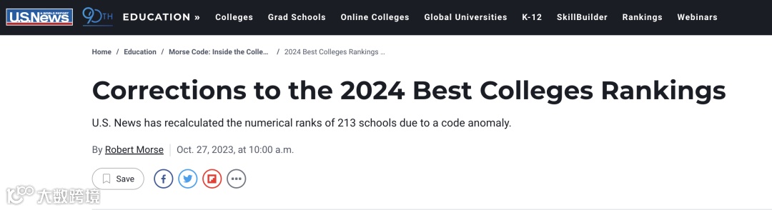 U.S.News官方于10月27日发布了一项声明,指出之前排名所用的代码存在问题,因此导致排名出现错误。