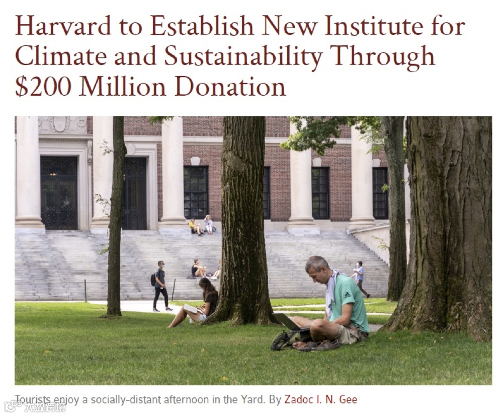 今年6月,哈佛大学宣布将利用2亿美元的捐赠,在今年秋季创立Salata气候与可持续发展研究所,这是一项具有开创性的举措。